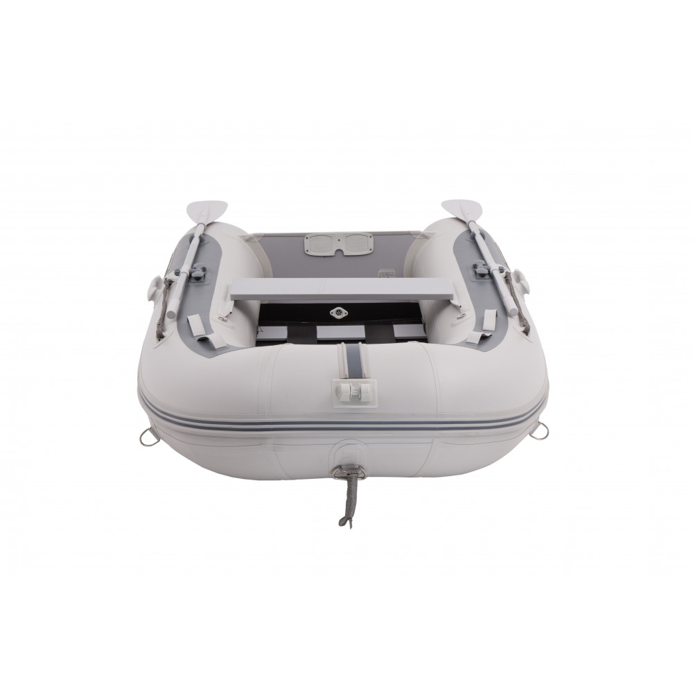 Σχοινοφόρο με σχοινί πολυπροπυλενίου / Βάση στηρίξεως κουπιού / Ένας ανοξείδωτος κρίκος πλώρης / Τάπα υδρορροής / 2 λαβές φουσκωτού / Τέσσερεις ανοξείδωτοι κρίκοι πρόσδεσης / Τρόμπα ποδιού / Εσωτερική και εξωτερική βάση μηχανής (καθρέφτης) / Υποδοχή σκαρμού με σφιγκτήρα / Δύο κουπιά αλουμινίου σπαστά / Κόντρα πλακέ κάθισμα / Τσάντα μεταφοράς / Βαλβίδες αέρος / Κυματοθραύστης / Πιαστράκια / Σετ επισκευής